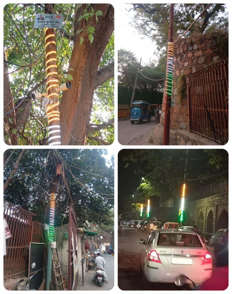 To upgrade civic amenities and improve road safety in the Daryaganj Ward, beautification work is progressing at a fast pace. As part of this initiative, tri-color LED strips are being installed on street light poles using the funds allocated by Nominated MCD Councillor Shri Manoj Kumar Jain.